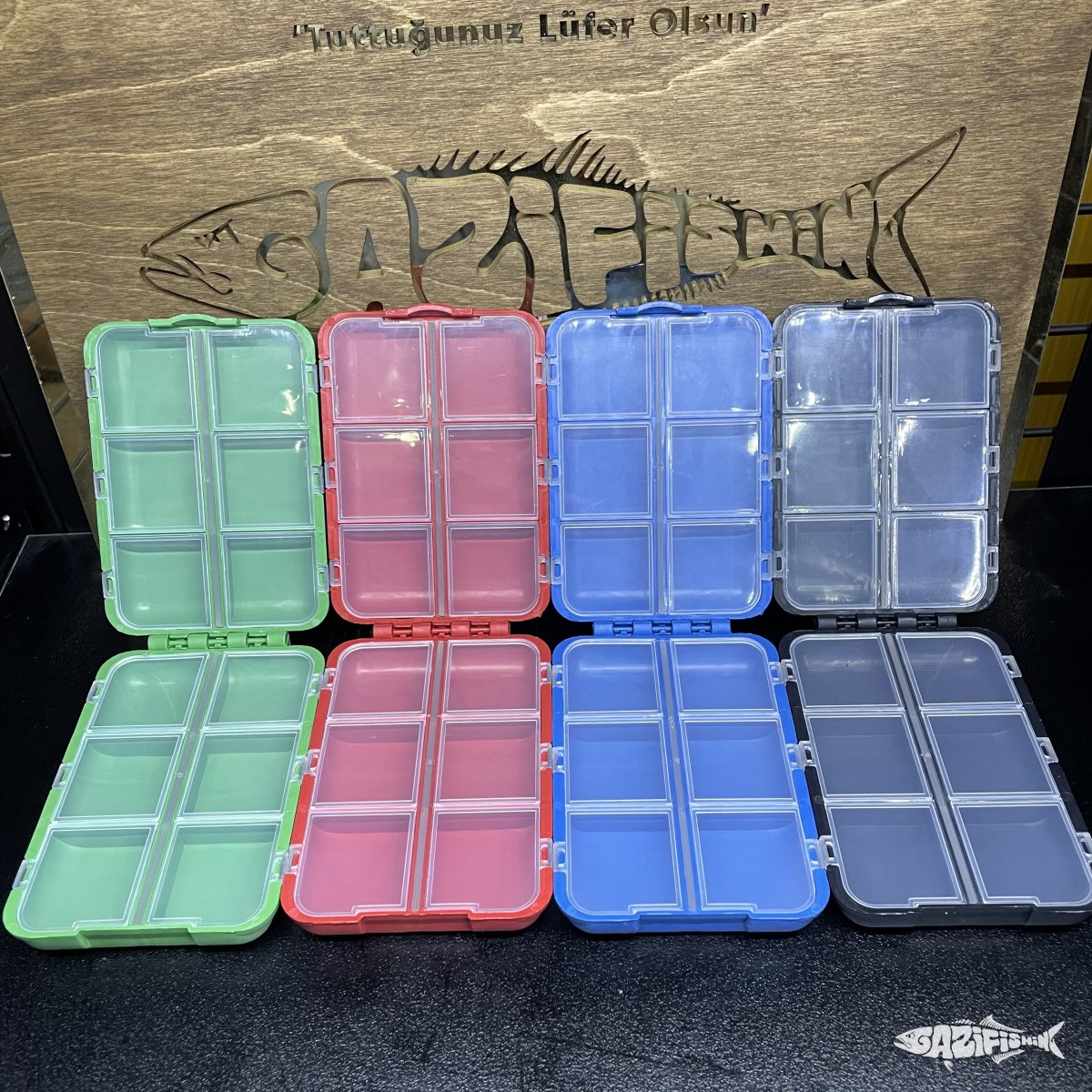 Toplamda 12 adet gözü bulunan Gazi Fishing Klips, fırdöndü, iğne kutusunun 4 farklı renk seçeneği mevcuttur.
