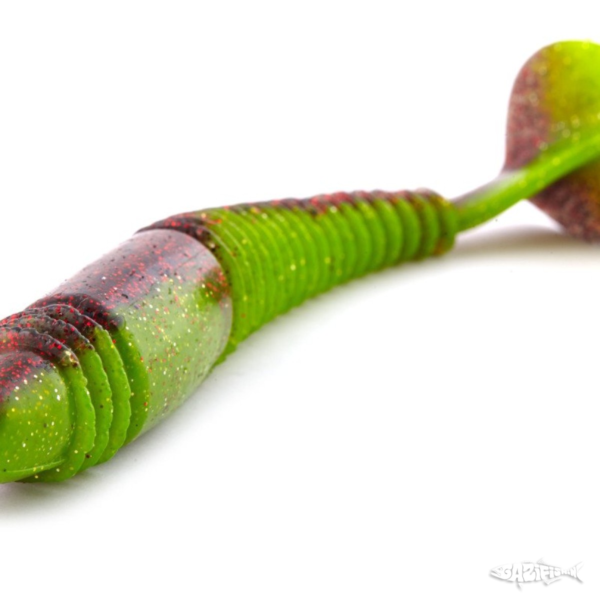 Tioga gerçekçi aksiyona sahip shad kuyuruk ve tırtıklı gövde (yanal kaburga şeritleri ) yapısı sayesinde avcılığını bir adım öne taşımaktadır peki bu shad kuyruk ve tırtıklı gövde ne işe yarar: tırtıklı gövde suyun içerisinde düz ve pürüssüz bir gövdeye nazaran  su içerisinde daha fazla  sürtünme meydana getiecektir bu sürtünme suyun içinde titreşim ve hareket sinyali ayrıca bizlerin duyamayacağı kadar sürtünmeye dayalı ses sinyalı olarak etrafa dağılmaktadır.