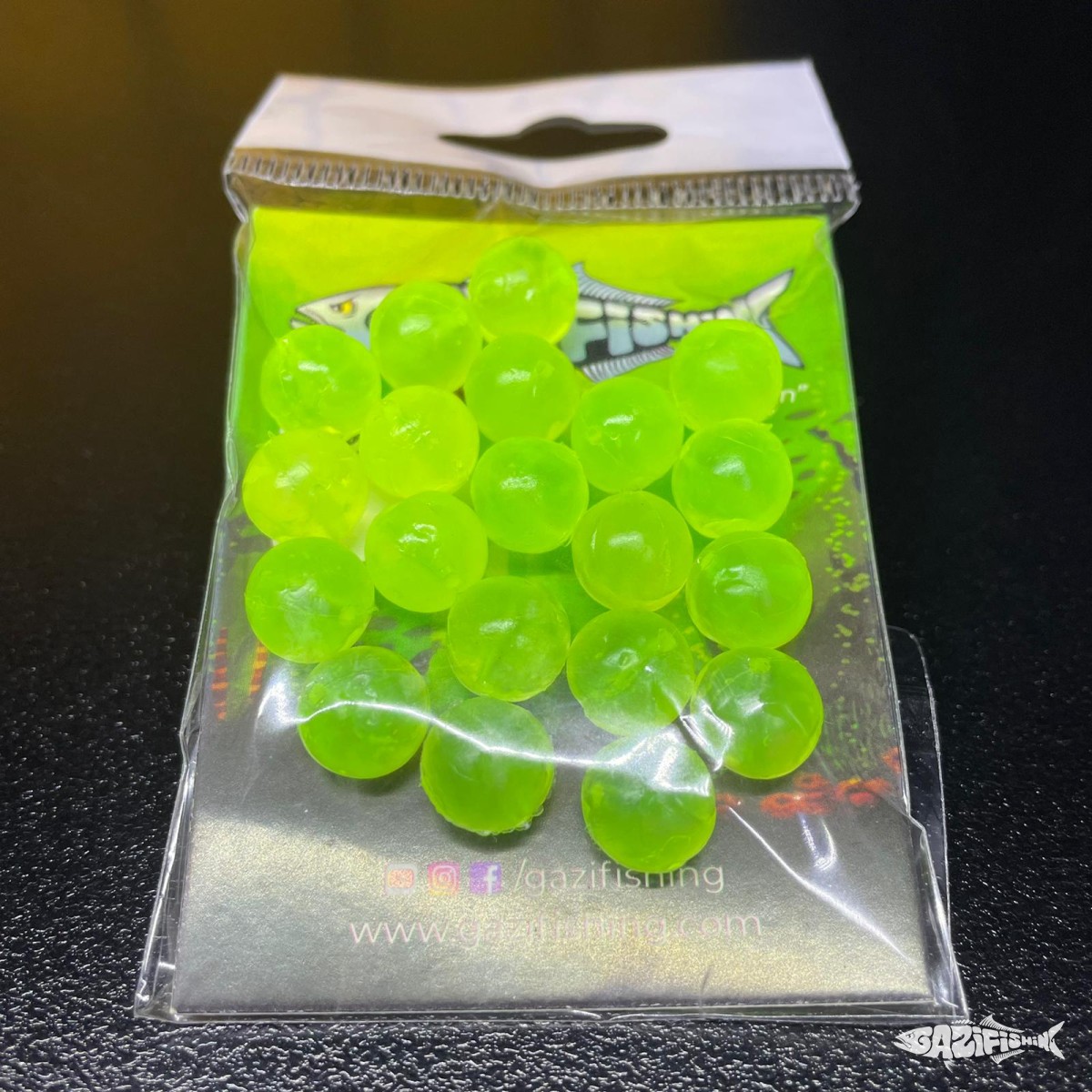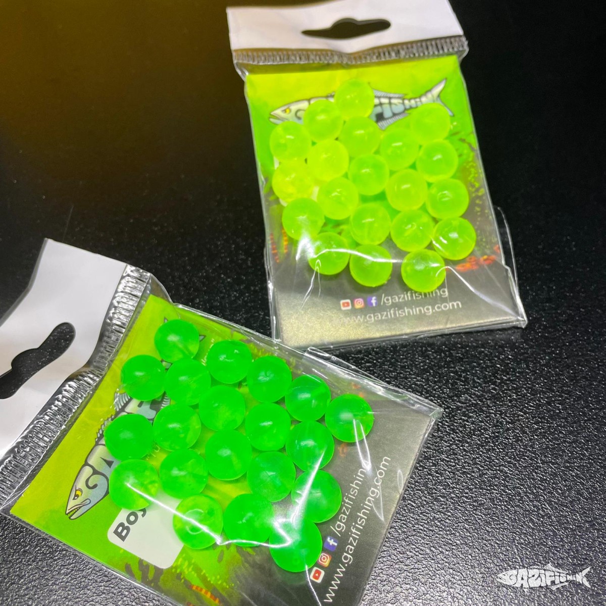Bir pakette 20 adet Silikon olta boncuğu yer almaktadır. İki farklı renk seçeneği mevcuttur. ( Yeşil ve Sarı )