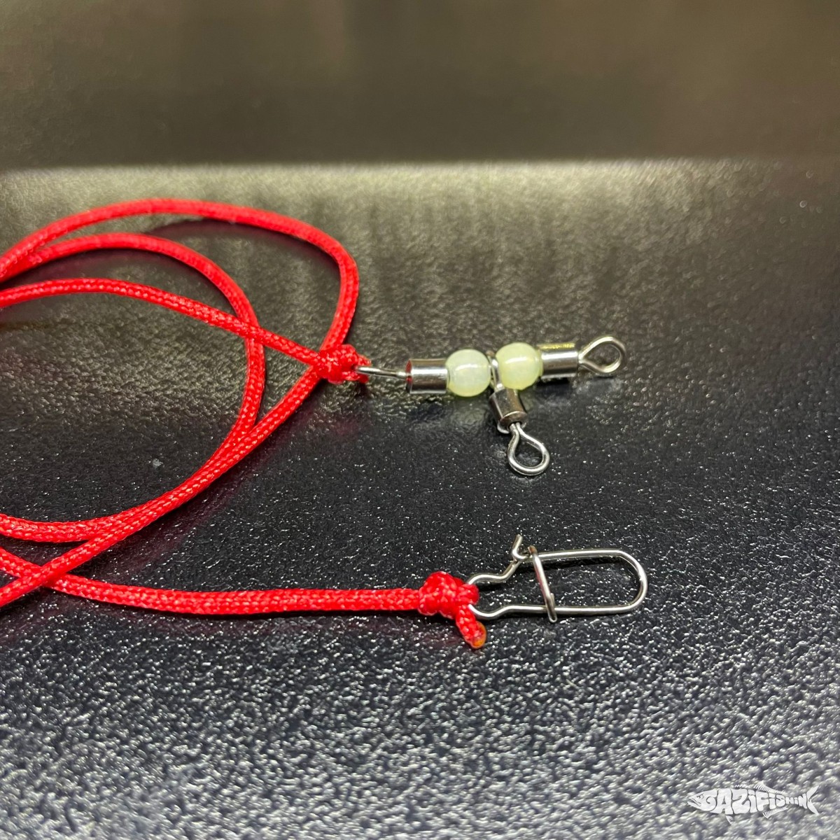 3 lü T fırdöndünün Boşta olan üst kısmına makinenizden gelen İpi direk bağlamanız gerekmektedir. Öne çıkan fırdöndüye ise maket balığınıza gidecek olan kurşun arkası bedeninizi bağlayıp kullanabilirsiniz.
